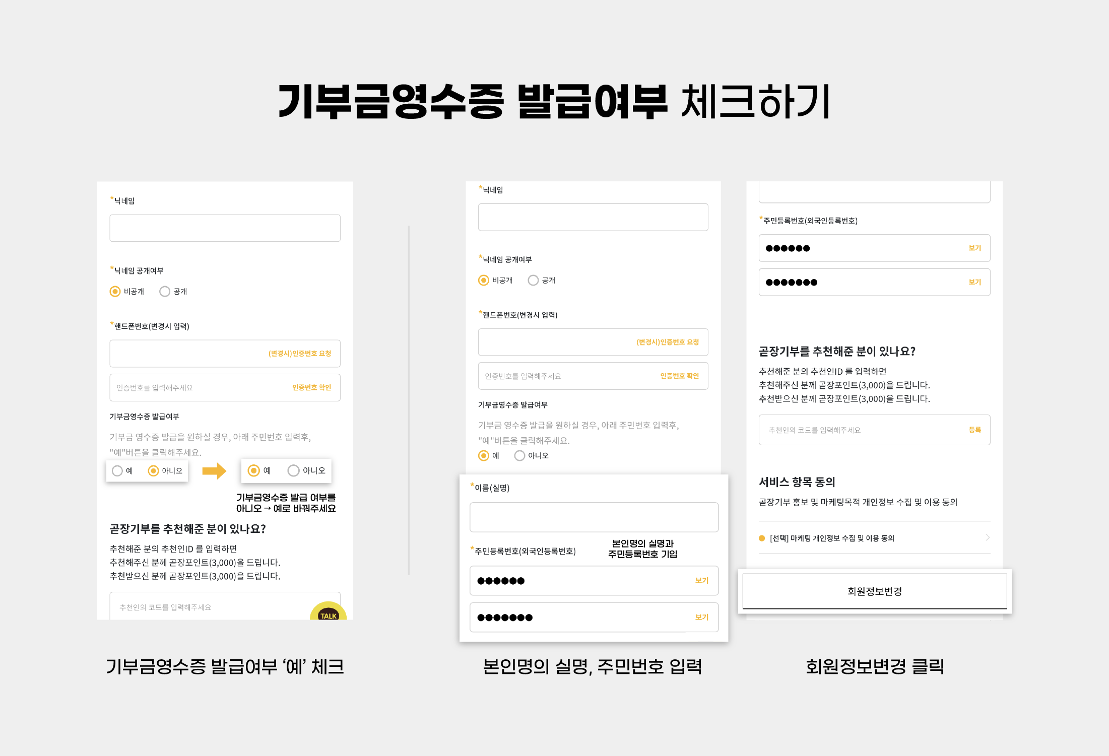 1. 회원정보변경 내 기부금영수증 신청 “예” 클릭